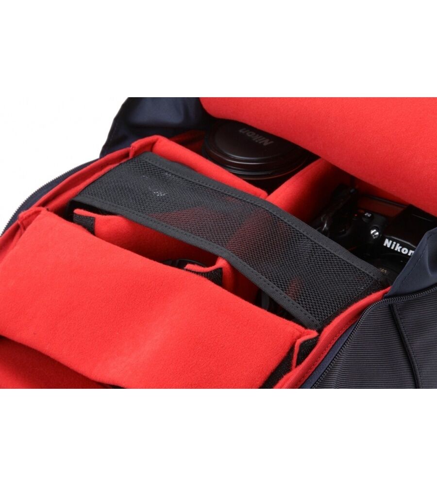 Hauptfach mit 2-Wege-Reißverschluss. Inneneinrichtung mit variabel einsetzbaren Trennelementen. Separates Laptop-Fach. Sicherungsnetz mit Klettbefestigung. Platz für persönliche Dinge im oberen Bereich. Für eine universelle Nutzung des Rucksacks können die Trennelemente herausgenommen werden.