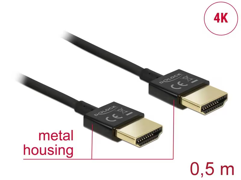 Delock Kabel High Speed HDMI mit Ethernet – HDMI-A Stecker > HDMI-A Stecker 3D 4K 0.5 m Slim High Quality