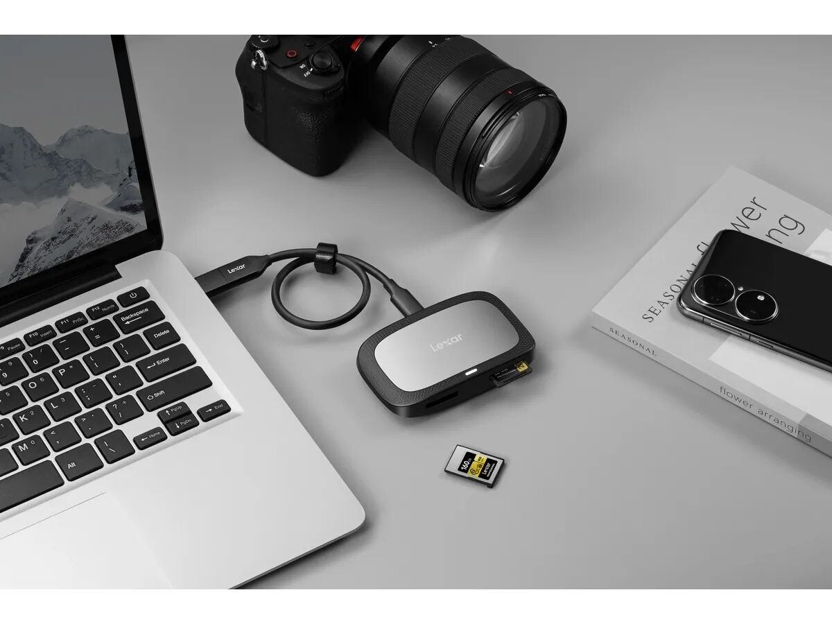 Das für die neuen Lexar CFexpress Typ A Speicherkarten optimierte CFexpress Typ A/SD Kartenlesegerät bietet superschnelle USB- Übertragungsgeschwindigkeiten von 10Gbps (USB 3.2 Gen 2) und ermöglicht so einen effizienten Workflow bei der Übertragung von hochauflösenden Fotos und Videoinhalten.