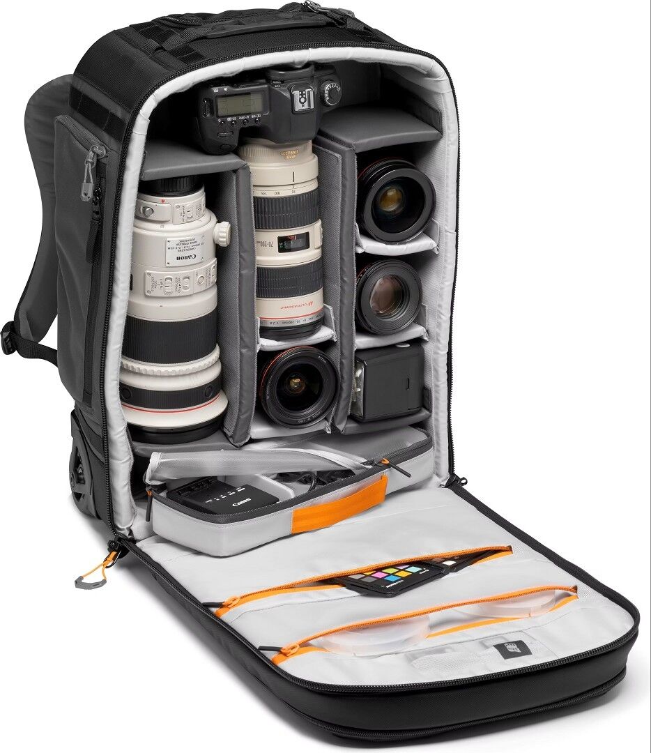Sie brauchen Handgepäck-Kompatibilität für Flugreisen und ganztägigen Komfort, um schwere Lasten zu entfernten Drehs zu tragen. Die beliebte Pro Trekker Kollektion von Lowepro erledigt diese Aufgabe mit Leichtigkeit. Sie wurde mit durchdachter Organisation und moderner Outdoor-Ergonomie im Hinterkopf entworfen. Es enthält auch ein AW Cover für zusätzlichen Schutz vor den Elementen. Der Pro Trekker RLX 450 AW II, ein professioneller Kamerarucksack und Rollkoffer, ist Teil von Lowepros Bemühungen um Nachhaltigkeit durch das Green Line Projekt. Er wurde auf den neuesten Stand gebracht und enthält nun 69 % recycelte Materialien, um die negativen Auswirkungen auf die Umwelt zu reduzieren.