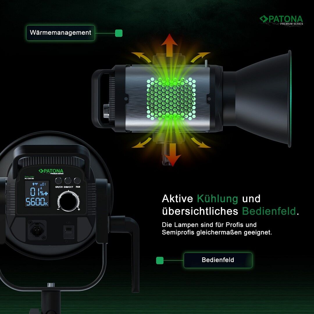 - 1x PATONA Premium Foto/Video-Licht COB-300 APRC