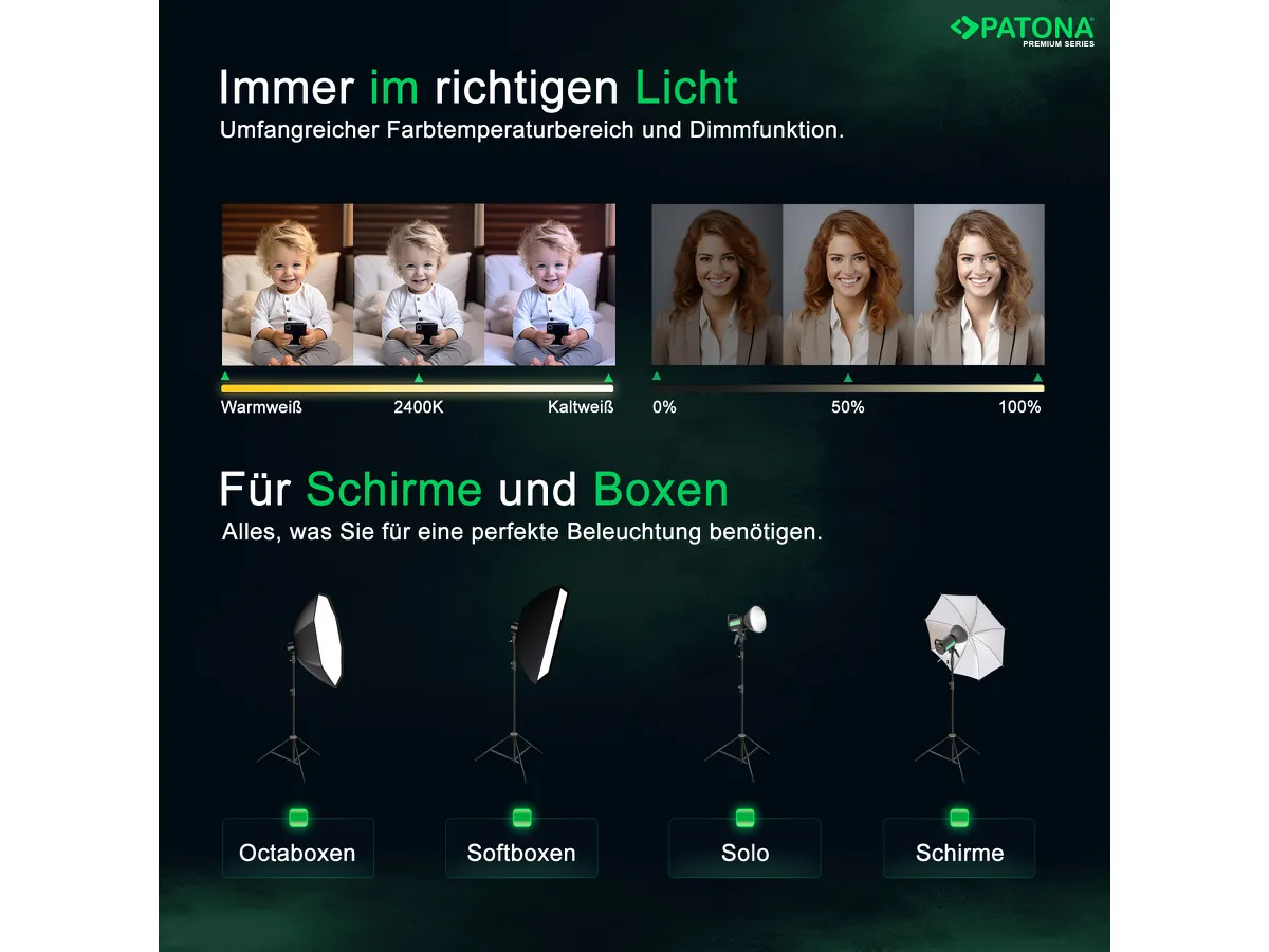 Farbtemperatur einstellbar von 3200K bis 5600K - Farbtreue: Hoher