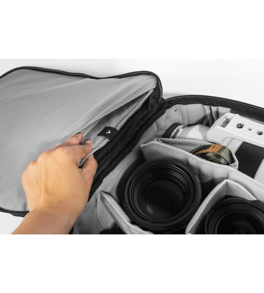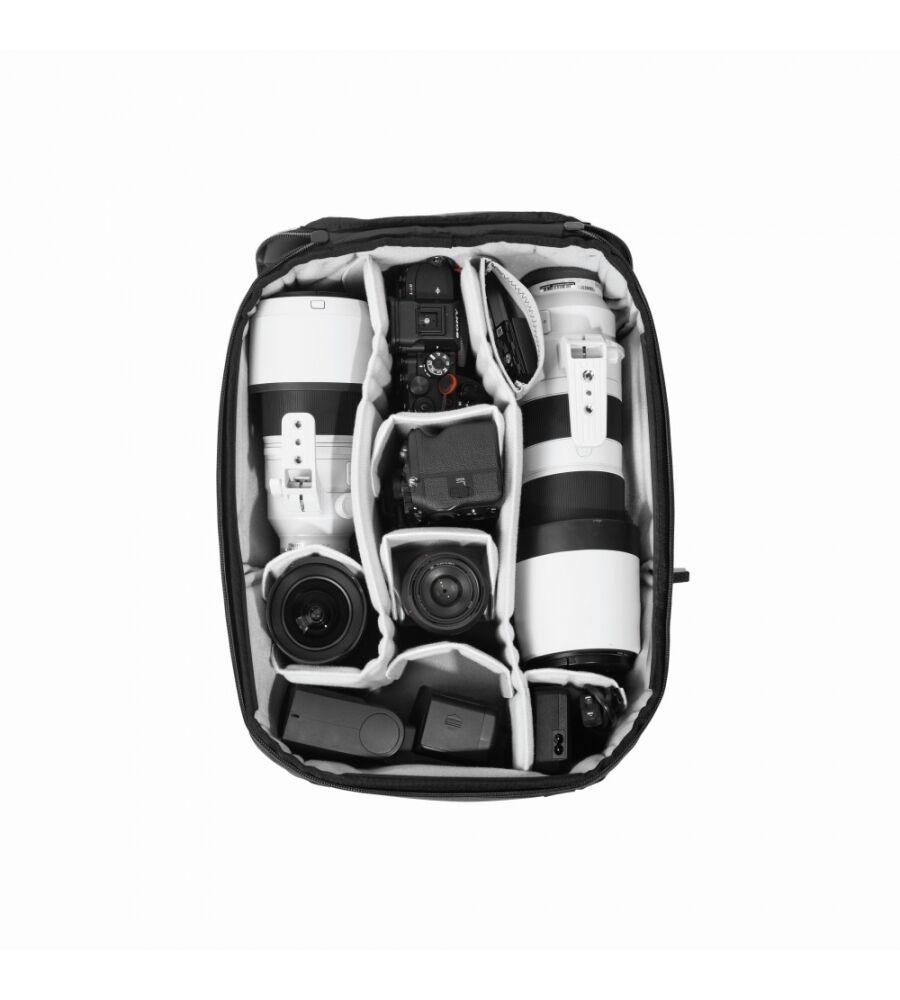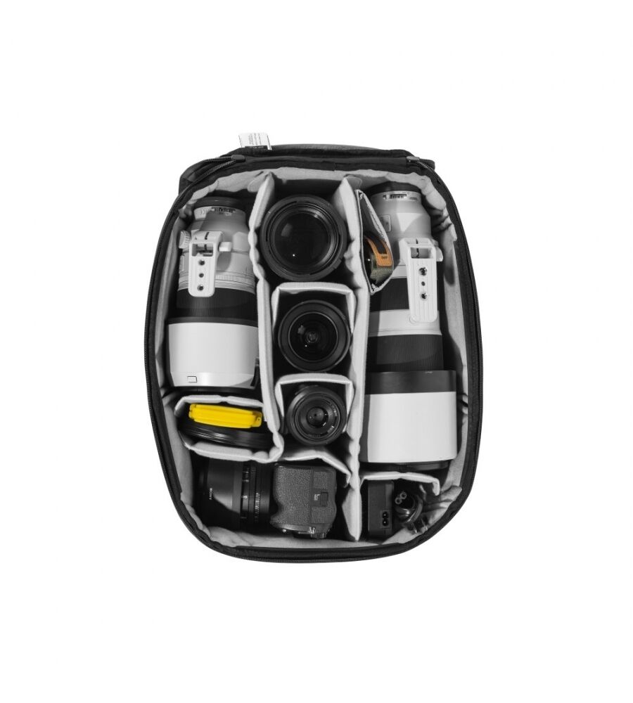 - "Floating Pockets" für kleinere Gegenstände (Objektivdeckel, Filter, SD-Karte etc.)