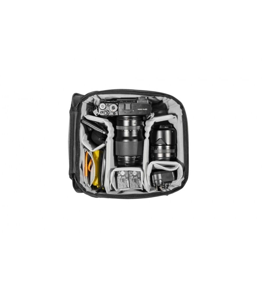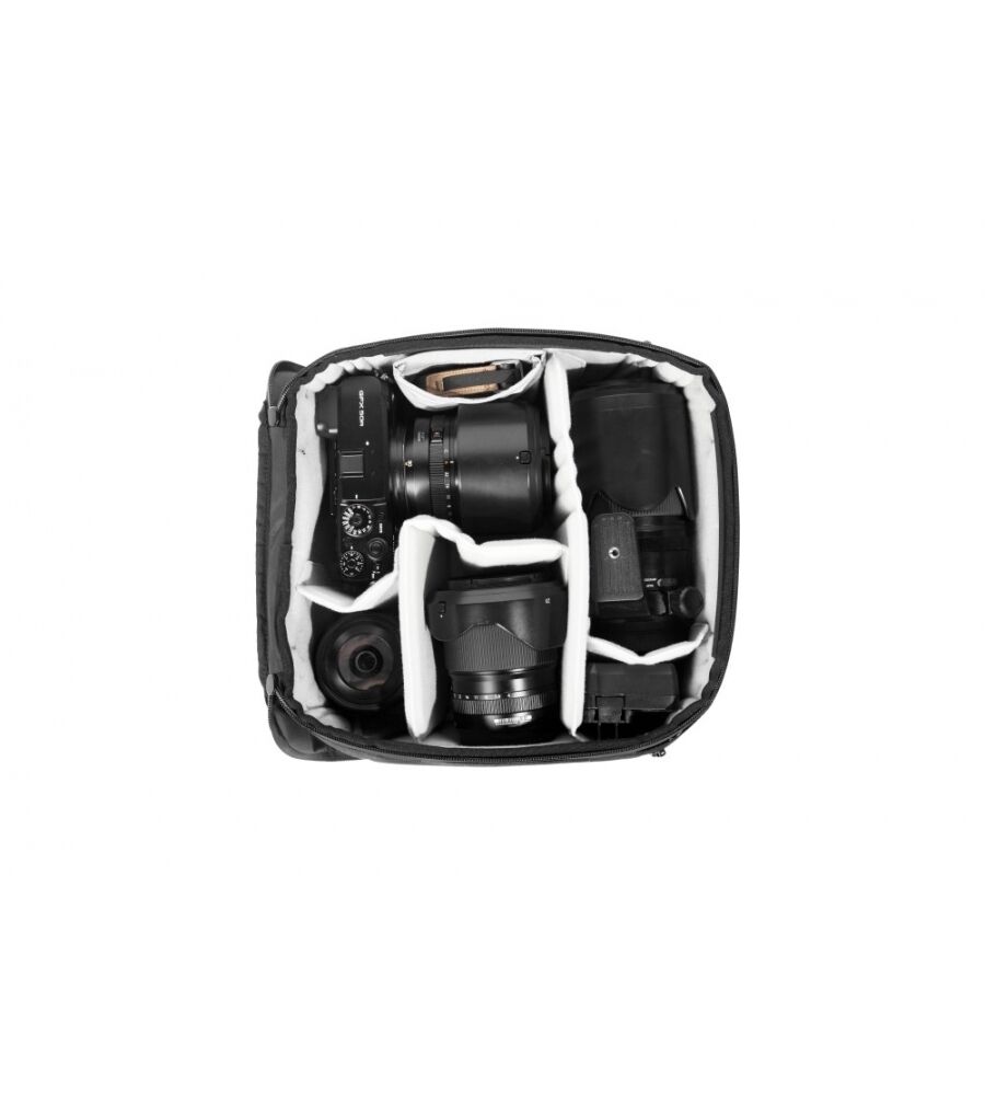 - "Floating Pockets" für kleinere Gegenstände (Objektivdeckel, Filter, SD-Karte etc.)