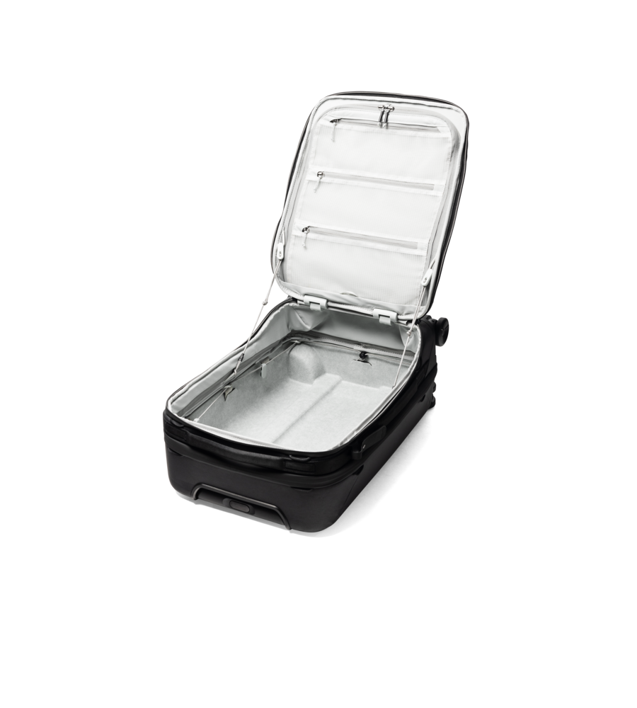 Ein äusseres EDC-Fach bietet schnellen Zugriff auf wichtige Dinge wie Pass, Brille oder Kopfhörer – ideal für Sicherheitskontrollen und im Flugzeug. Das gepolsterte Laptopfach verschliesst sich magnetisch von selbst und verhindert so versehentliches Herausrutschen. Ein externer Cord Hook™ Tragegurt erlaubt es, zusätzliche Gegenstände außen am Koffer zu befestigen – ideal, wenn eine Hand fehlt. Innen sorgt das Cord Hook™ Haltesystem für eine schnellere und elegantere Fixierung als herkömmliche Kompressionsgurte.