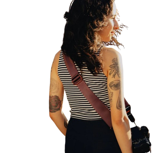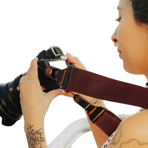 · Der Gurt hat eine glatte und eine griffige Seite und kann entsprechend umgedreht werden. Die glatte Seite gleitet über die Kleidung und garantiert einen schnellen Kamerazugriff.