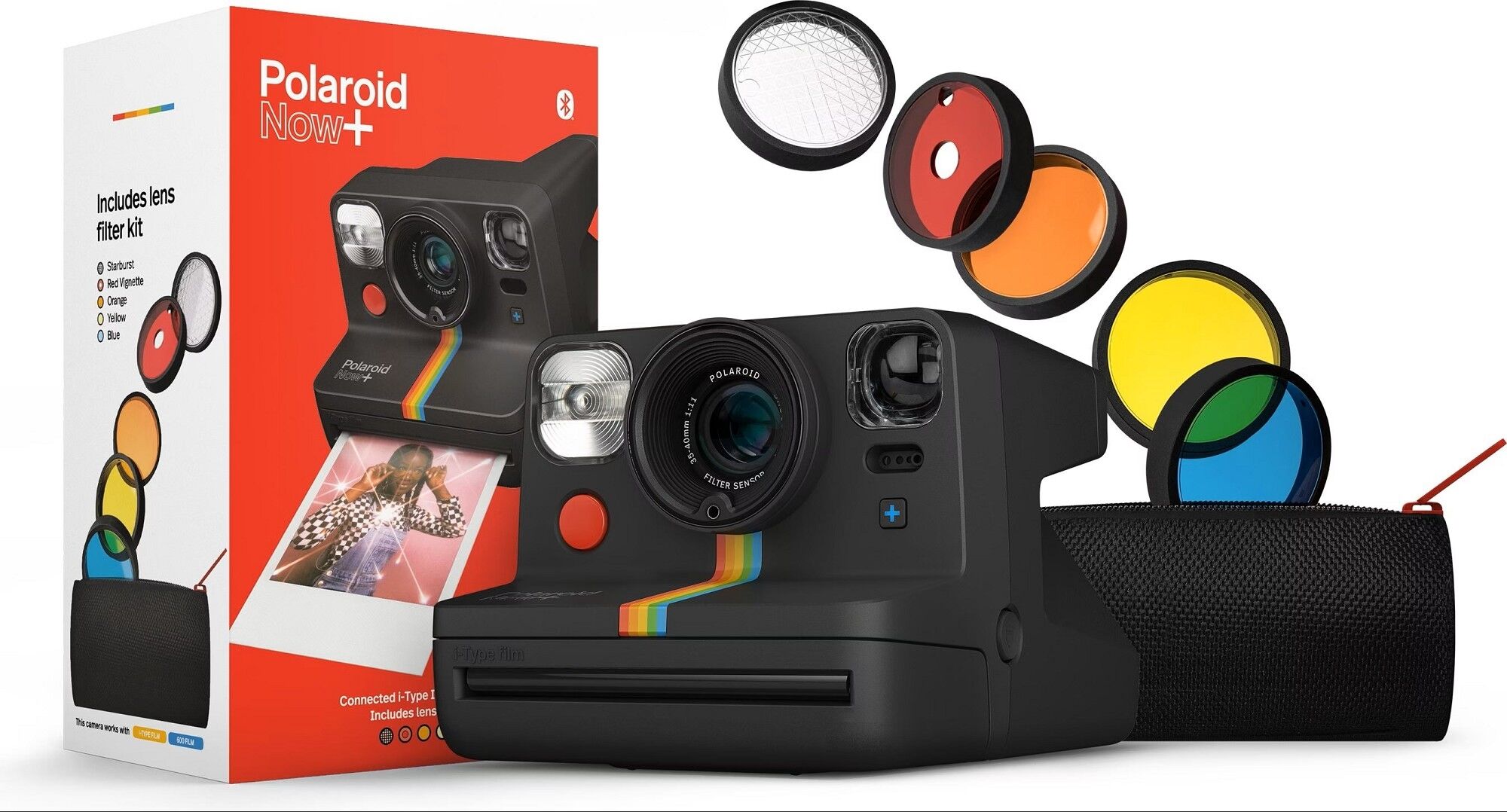 Mit 5 experimentellen Objektivfiltern, darunter Starburst, Rotvignette, Orange, Blau und Gelb, können Sie Ihre Fotos in Farbe tauchen, Kontraste vertiefen oder verträumte Effekte hinzufügen. Mit einer Tasche mit Reissverschluss zur sicheren Aufbewahrung. Die kultige Kamera behält ihren Stil bei, besteht aber jetzt zu 40 % aus recycelten Materialien. Es ist schwer, einen Klassiker zu übertreffen. Die Polaroid Now ist kompatibel mit Polaroid i-Type und 600 Film im klassischen Polaroid-Sofortbildformat.