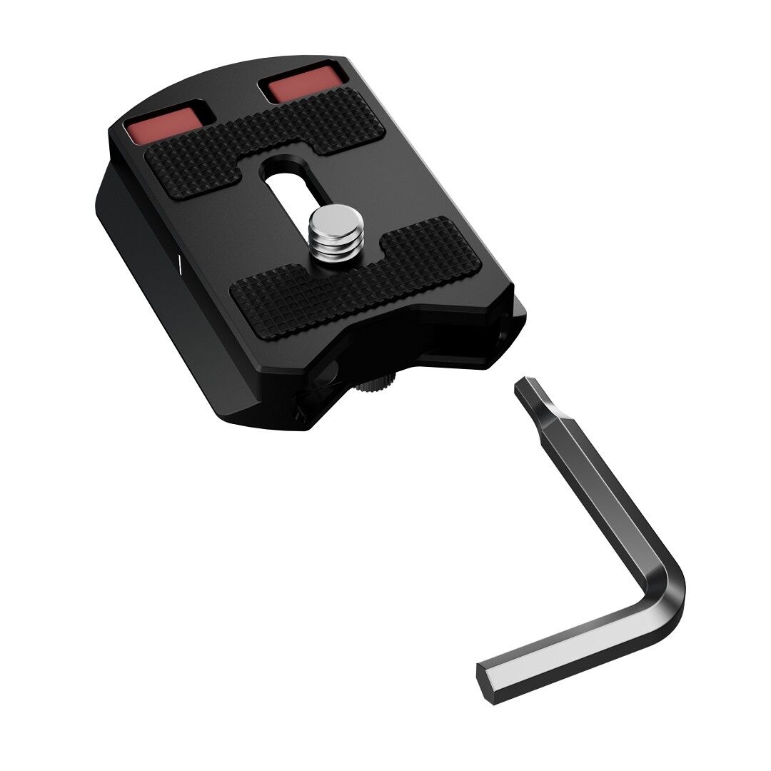 den Knopf und lade die Schnellwechselplatte mit nur einer Hand, um Zeit zu
