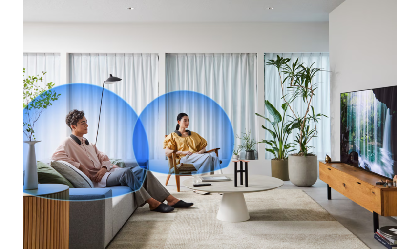 Ihr Fernseher und der BRAVIA Theatre U können simultan Sound wiedergeben. Während Ihr Partner fernsieht, können Sie auf diese Weise über Ihren Nackenlautsprecher denselben hochwertigen Sound hören, während Sie kochen, aufräumen oder durch den Raum gehen.