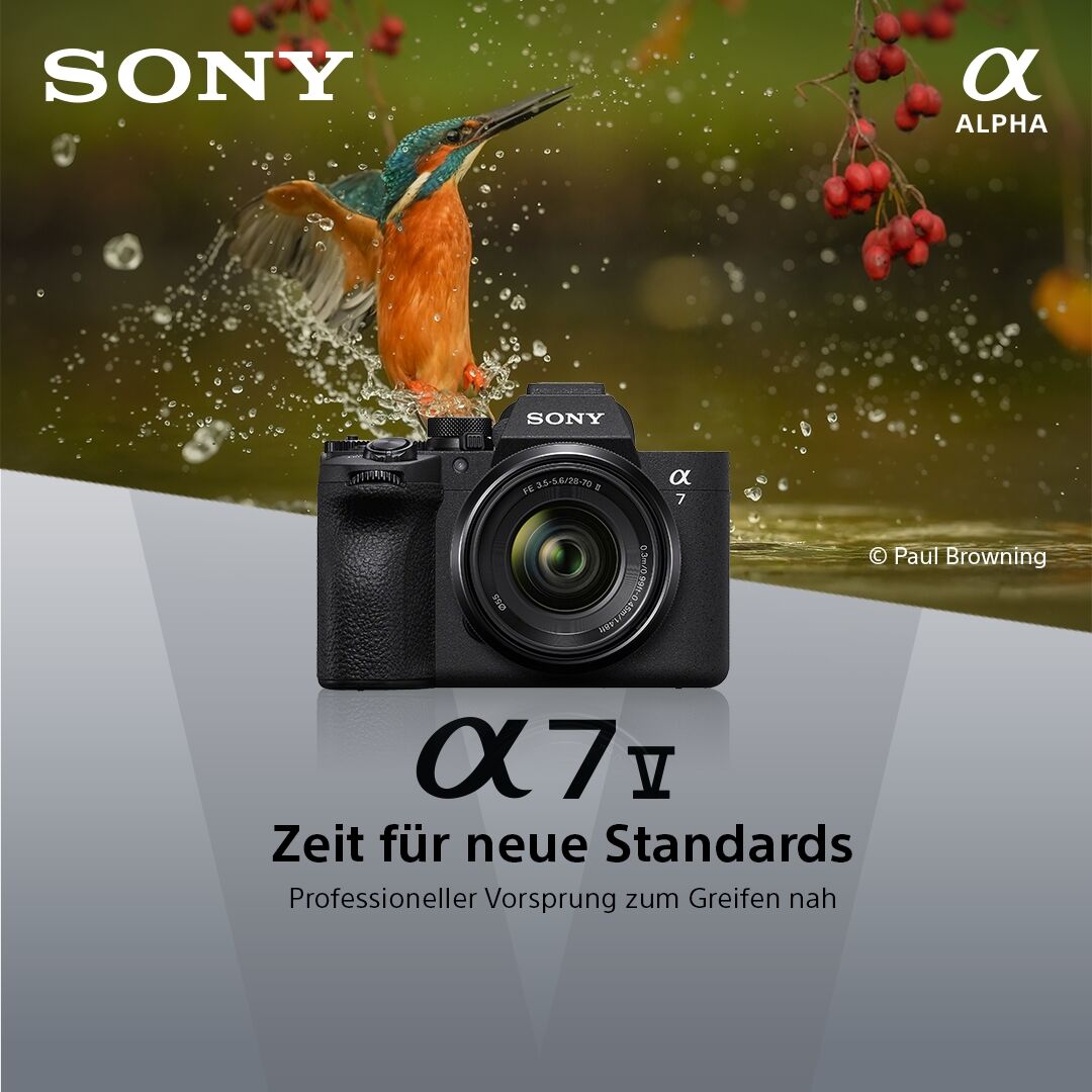 Die α7 V verfügt über die neueste Technologie und ist mit einem mehrschichtigen Exmor RS CMOS-Bildsensor mit High-Speed-Schaltung ober- und unterhalb der Sensorschicht ausgestattet. Das Auslesen erfolgt ca. 4,5-mal schneller als bei der α7 IV. So werden eine maximale Verschlusszeit von 1/16.000 Sek., unterbrechungsfreie Serienaufnahmen mit vollumfänglichem AF/AE-Tracking und Videoaufzeichnungen bei 4K 120p ermöglicht. Die fortschrittliche Sensortechnologie bietet bis zu 16 Stufen beim Dynamikumfang mit fließenden Abstufungen.