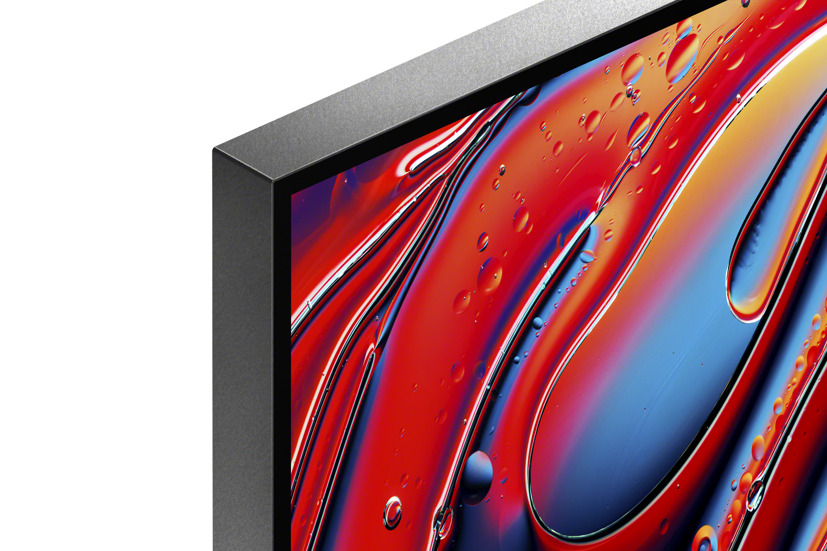 Mit fast unsichtbarem Rahmen. Die natürlich warme, fleckresistente Textur fügt sich nahtlos in Innendekor, Wände und BRAVIA Theatre ein.