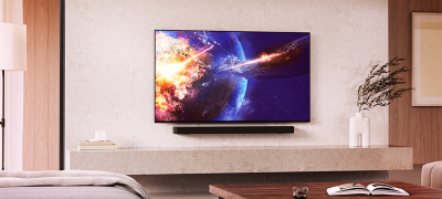 Fernseher und Soundbar können gemeinsam nah an der Wand befestigt werden und fügen sich dadurch nahtlos in Ihr Wohnzimmer ein.