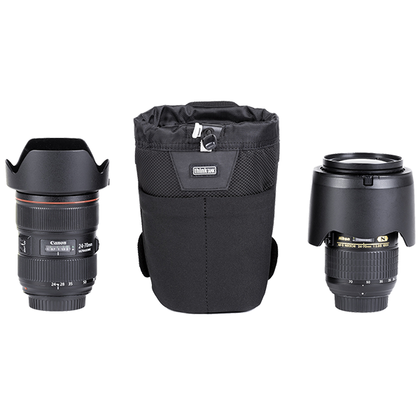 Dieser Objektivköcher schützt Standardobjektive, kleine Zoomobjektive oder mittelgrosse Festbrennweiten und passt an jeden Think Tank Hüftgürtel.